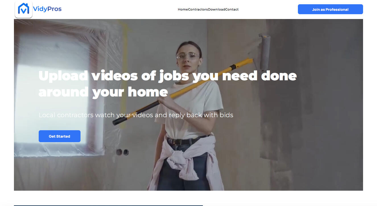 Upload videos for jobs you need done around your home on VidyPros to hundreds of local professionals at once, and let them come to you with bids. Our app tools help make projects a breeze from start to finish so you can get back to the important things.We spent two years building three apps for VidyPros. One for the consumer who uploads videos, one for contractors that watch the videos and one for landlords/property managers to manage tenant videos and contractors all in one app. The framework we have built for VidyPros can be applied to many industries, and we would like to partner with individuals or companies who can instantly plug in our tech into a userbase where it is needed now.